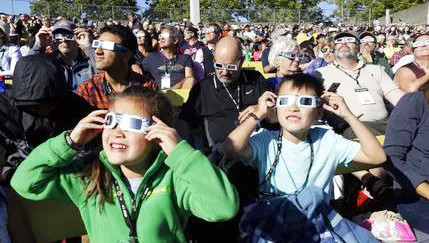 Scientists warned people not to look into the sun without protection, except when the sun is 100 percent covered. Otherwise, to avoid eye damage, keep the solar specs on or use pinhole projectors that can cast an image of the eclipse into a box.