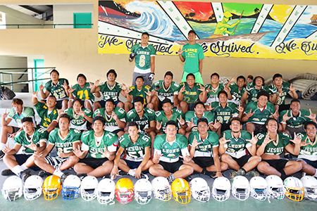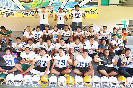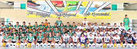 Leone High School, "Home of the Lions" – Football Team, both Varsity and Junior Varsity (JV) combined in this team photo. Led by Head Coach Okland Salave'a, they will open this year’s football season against the Vikings this Saturday morning at the Veterans Memorial Stadium. [photo: TG]
