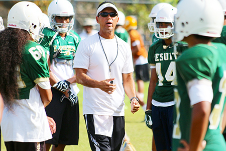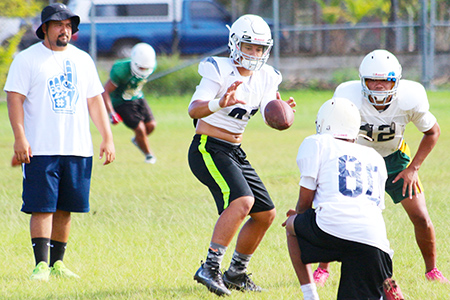 Leone Lions Head Coach, Okland Salave'a directing their strategic passing game during practice, at their school field this summer – in preparation for their game against the Vikes this Saturday. [photo: TG]