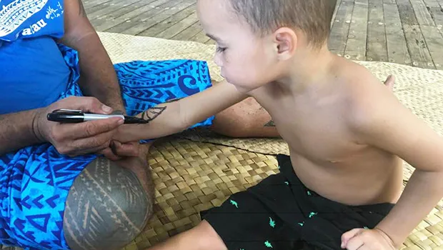 Tatau Off the Grid, was the theme, of the 14th Annual Tisa’s Tattoo Festival in Alega Bay, this past weekend, Friday Oct. 26 through Sunday, Oct. 28, 2018. The first tattoo of the day this past Friday was this young one, who got a perfect Samoan tatau, in magic marker. Just right to start with. More photos and info later this week. [Tisa’s Facebook]