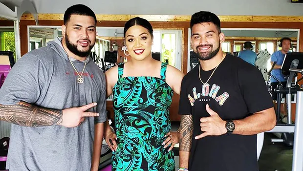 Sons and daughters of Samoa visiting home on leave to visit family and take a break from Army and NFL duties. Shalom Luani of the Houston Texans and Daniel Etuale of the Cleveland Browns - American Samoa's very own NFL players - pictured with U.S. Army SPC Arrianna Princess Auvaa after an exclusive interview with @arrianna_princess_auvaa of the Jordan and Princess Comedy Channel Facebook page. Link to Jordan and Princess from the Samoa News website. [photo: JPCC]
