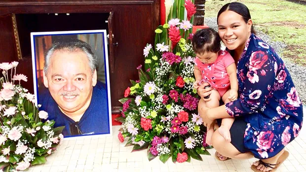 Patosina Canales and her daughter Beverley beside the gravesite of their uncle ‘Rudy’ — his final resting place — during last Saturday’s Memorial celebration of Rudolf Annesley’s life, held on the Annesley family land, in Tafuna-Iliili, where friends and family gathered to remember him and say their farewells before his ashes and final resting place were blessed and the urn interned at the family gravesite. [courtesy photo: Etenauga Lutu]