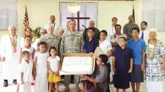 Captain Puletasi Wong-Mageo (in Army fatigues, in front of cake) has been promoted to Major in the US Army and the promotion ceremony was held Mar. 6 at the Emmanuel Baptist Church in Leone, presided over by Lt. Col. Clinton Seybold of the American Samoa US Army Reserve Installation Commander. In this photo provided by the family, church leaders, family members and others surround Maj. Wong-Mageo. His Promotion Orders state that the “President of the United States has reposed special trust and confidence in your patriotism, valor, fidelity and abilities in view of these qualities and your demonstrated potential for increased responsibility, you are, therefore, promoted, in the US Army to the Grade of Major...effective 01 March 2016...” According to the local Army Reserve, Wong-Mageo successfully completed his 3-year tour as the Executive Officer of the local US Army Reserve Installation. He will be leaving the island soon with his family to take up a new post in California. Replacing him in American Samoa will be Cpt. Charles Chapa, who will be on ground late April. In the interim, Seybold will be supervising daily operations at the US Army Reserve Center in Tafuna.