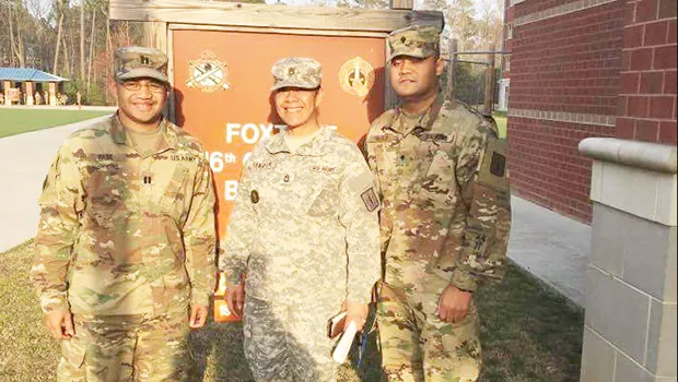 Spec. Robert Toilolo (right) sends a shout out to friends and family who will be happy to know that even in Ft. Lee, Virginia, he has Samoan brothers and sisters — including SFC Leaupepe (center) and his new commanding officer, Capt. Valentino Pase (left).