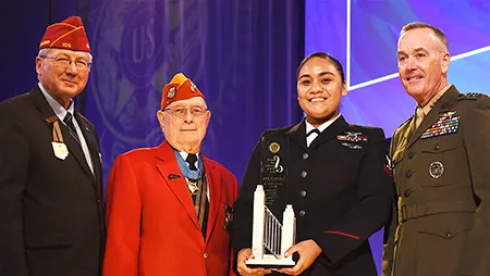 After accepting the award, each recipient gave a speech and King said in her remarks, “Talofa and good morning... I’m extremely grateful and humbled to the American Legion for this wonderful, once in a lifetime, award,” according to a video of the award ceremony by The American Legion.