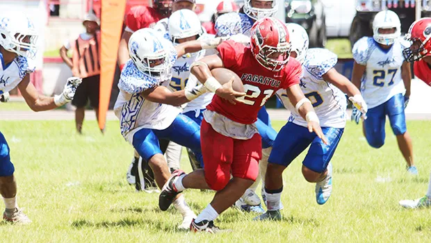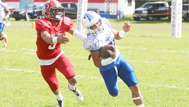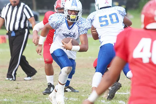 In the second quarter, Samoana’s special teams gave up six, after Elliot Lelei kicked a long punt as they were pinned deep in their own territory in a fourth and long situation.