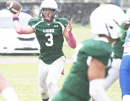 Last Thursday kicked off week No.6 for the American Samoa High School Athletics Association's (ASHSAA) football season; and despite the the buckets of rain, Samoana's Blue Empire came out strong to collect their third victory of the season in the varsity division, after sending the Lions home scoreless.