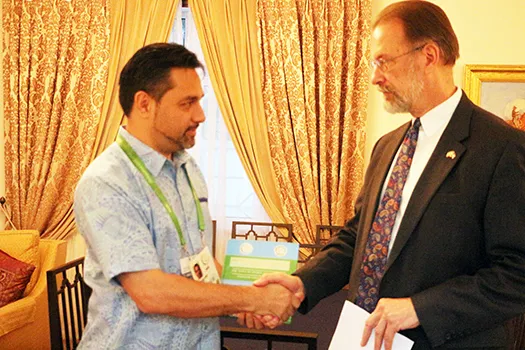ASNOC Secretary General Lake presented the Ambassador and his wife with gifts from American Samoa. Lake said that it was an honor to be invited by the US Ambassador to his residence for dinner and with his local Masters of Sports guests including masters in Wrestling. Lake was glad that the young athletes had a chance to experience this night and to be treated like the dignitaries they are and as ambassadors for American Samoa.