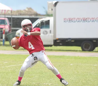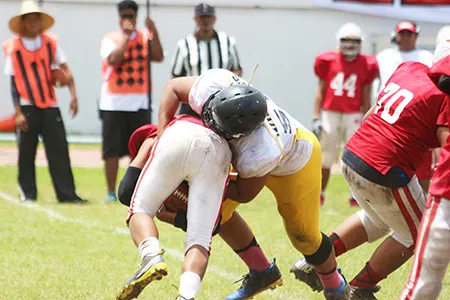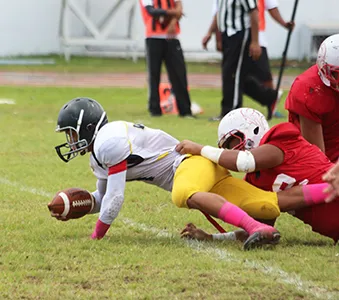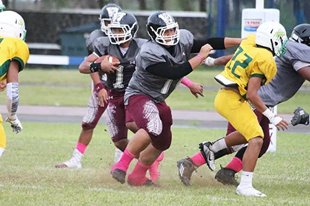 The Warriors took the early lead in the opening half of the game with Minute Faitasi at the helm of Tafuna’s offense – 1:29 in the first, and Faitasi threw a long pass from midfield out to Savaliga Masunu who secured that catch for the opening touchdown of the game. Their two-point conversion in the hands of Panapa Filoiali’i was good enough to put them ahead with eight points.