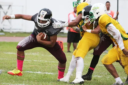 Nevertheless, the opening touchdown of the game came in the hands of one of the Mageo twins – the eighth grader from Coleman Elementary, Georgia Mageo muscled his way past the goal line for the first touchdown of the game from Nu’uuli’s 5-yard line. Faga’itua’s two-point conversion, an option play saw Heini Ta’ase pulling the ball out and keeping it into the end zone to put his team ahead with a comfortable eight point lead with 5:12 into the opening quarter of the game.