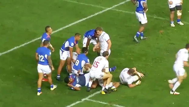 Manu Samoa exploded into life, with prop Logovi’I Mulipola finishing some great buildup with a close range try in the 26th minute.