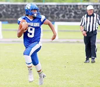 Their first and goal on Samoana’s 1-yard line saw Wildcats Fano muscling the ball passing the goal line, as he patiently waited for his o-line to move the wall forward to some running space. Nu’uuli was clearly ahead by two points after Fano walked in the two-point conversion for the Wildcats, as they were up 8 - 6 in the first half of play with only 39 seconds remaining in the second quarter of action.