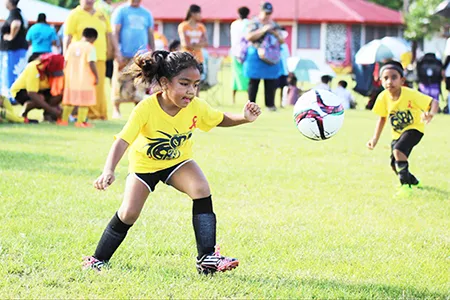 The Grades 1-2 group is mixed, and playing a 5-a-side format, with the competition tabbed as non-competitive, meaning all teams are considered winners at game’s end. There are 10 teams competing in the Grades 3-5 division for the girls, and an equal amount of teams in the boys’ same age group.