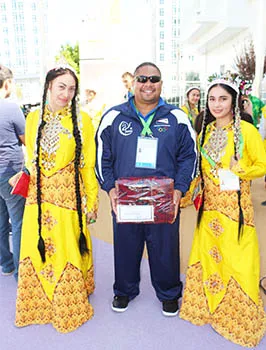 Ashgabat, Turkmenistan — Three members of Team American Samoa to the 5th Asian Indoor and Martial Arts Games were on hand to attend the first Team Welcoming Ceremony held Friday Sept. 15. The rest of the team, training in California, is expected to arrive Sunday September 17 in time to participate in the much anticipated opening ceremony. The Games which had allotted 500 Global Media seats for coverage is now trying to accommodate 750 plus applications from around the world who want to cover what is being touted as the opening ceremony for the biggest ever multi-sport event to have been staged in Central Asia.