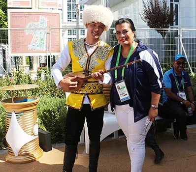 The national flag was raised and anthem played, and a cultural performance of traditional dance was enjoyed by all with performers wearing the colors of the five regions of Turkmenistan.