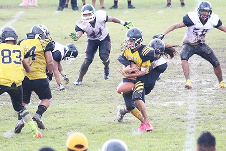 As for Head Coach Pati Pati and his Samoana Sharks, they're still winless in the varsity division, as their offense again is going through another year of trying to get the ball rolling. For their defensive unit, Sharks DC Maselino Tautu made sure his defense understood the importance of win to their record – minor mistakes and shooting themselves in the foot led to another loss for the Sharks this past weekend.