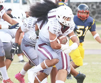 At 4:26 in the third quarter of play, Tafuna’s first down possession on Nu’uuli’s 2-yard line, saw Mauigoa muscling his way behind his offensive linemen with a quarterback keep to score another Warriors touchdown.