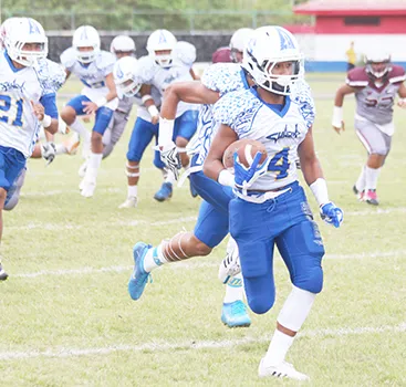 Samoana’s offensive unit led by Junior ‘Jam’ Tanielu didn’t take long to get on the board in their first meeting against Tafuna, after the opening kick-off of the game was returned by Kobe Lefiti all the way back to Tafuna’s 5-yard line.