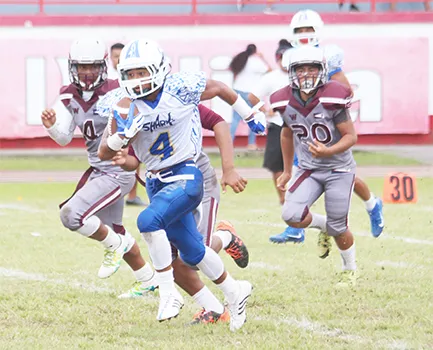 Last Saturday, the American Samoa High School Athletics Association (ASHSAA) kicked off week 3 of high school football at the Veterans Memorial Stadium – fielding one of the long awaited battles between the Sharks and the Warriors, where Tafuna’s defensive coordinator Kevin Magalei and the Warriors defense, destroyed Samoana’s offense in a 48-21 victory in the varsity division.
